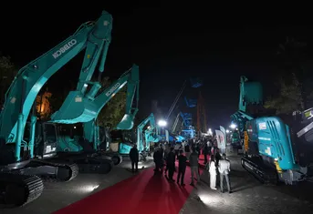 توجه الحضور، عقب انتهاء العروض التقديمية، إلى منطقة العرض الخارجية لمعاينة معدات البناء الثقيلة عن كثب، بما فيها حفارات كوبيلكو، وللتواصل وبناء علاقات مهنية مُثمرة بين مُختصي القطاع ومُوردي معدات البناء.