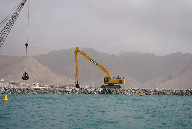 When conducting projects close to a body of water, you can't just plop an excavator down on the shore. A long reach digger reaches out over the water to remove silt, debris, and keep the waterways flowing smoothly. This has been the case when the Al Majaz Island in Sharjah was constructed.