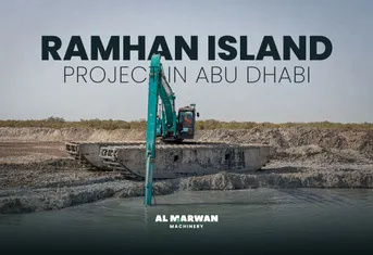 Long-reach booms/sticks give you more reach and depth but with reduced breakout and smaller buckets to keep tip load within stability envelopes. On Ramhan Island, where shape accuracy and gentle slopes are as important as raw force, long-boom excavators allow fewer relocations, better line-of-sight control for finish work, and safer operations from stable ground. That’s why Al Marwan’s long-boom SK850/395/PC850 units complement the amphibious fleet so well.