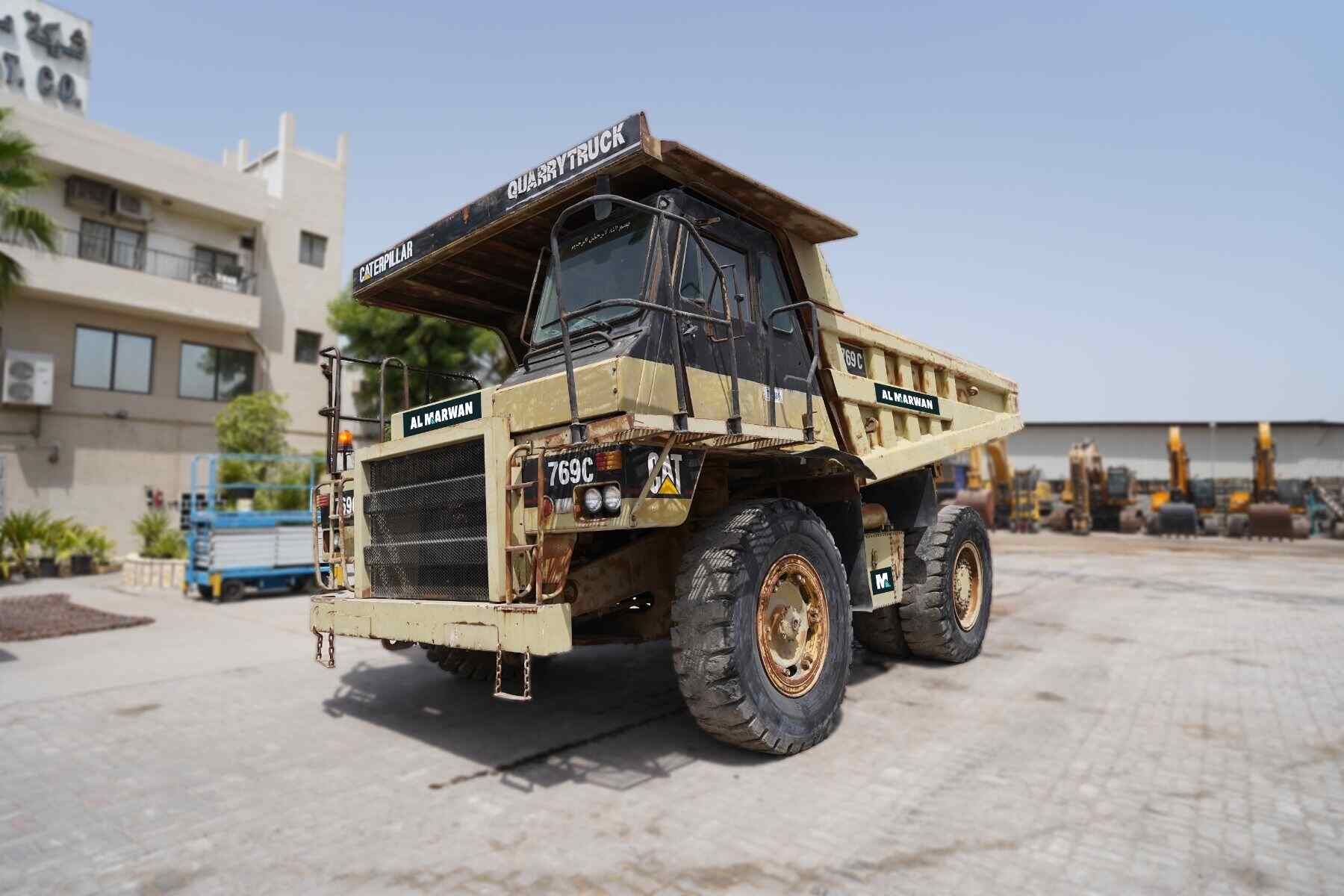 With a fully loaded weight at 67587 kg, the Caterpillar 769C rigid dump truck is an ideal choice for heavy-duty hauling of rocks and materials on any construction, mining, quarry & aggregate site. The used 1995 rock dumper truck has an original Caterpillar engine with a powerful output at 336 kW.