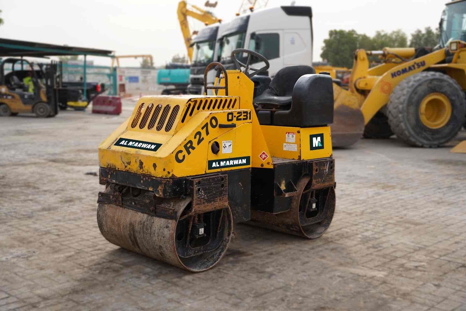 The Sakai CR270 double-drum ride-on roller is equipped with ergonomic vibration controls for ease of use. This 2008 used roller features a powerful Honda engine capable of 13.2 kW power output.